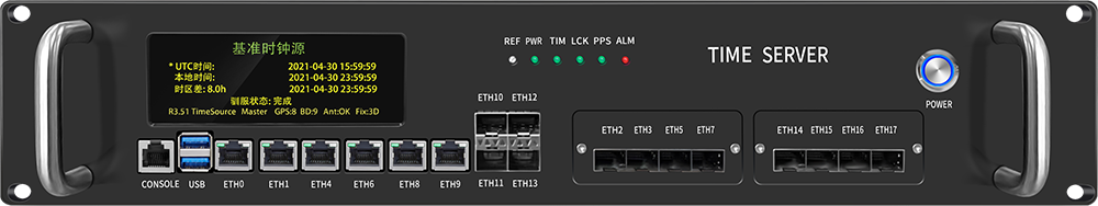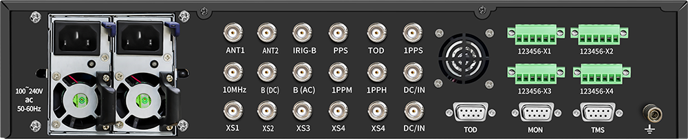 L7000-RBTS「銣鐘」NTP國產(chǎn)信創(chuàng)時間服務(wù)器為防火墻內(nèi)的網(wǎng)絡(luò)設(shè)備、終端、服務(wù)器提供準(zhǔn)確、可靠和安全的高精度衛(wèi)星時間參考,可為數(shù)萬臺標(biāo)準(zhǔn)網(wǎng)絡(luò)時間協(xié)議(NTP,含V1/2/3/4)和簡單網(wǎng)絡(luò)時間協(xié)議(SNTP)的客戶端進(jìn)行時間同步。 NTP網(wǎng)絡(luò)時間服務(wù)器已廣泛應(yīng)用于金融、交通、證券、電力、移動通信、石油、工業(yè)、電子商務(wù)、工業(yè)自動化、云計算、安防、智慧城市、物聯(lián)網(wǎng)、能源、國防等各領(lǐng)域。 設(shè)備采用冗余架構(gòu)設(shè)計,在內(nèi)部單獨構(gòu)建CPU 和FPGA電路組成馴服系統(tǒng),馴服系統(tǒng)接收北斗系統(tǒng)內(nèi)各衛(wèi)星的星歷數(shù)據(jù)和原子鐘頻標(biāo)基準(zhǔn),經(jīng)過延時補(bǔ)償、濾波和PID算法實現(xiàn)本地時鐘的同步和高精度授時功能。專業(yè)的數(shù)字硬件設(shè)計、高效國產(chǎn)操作系統(tǒng),具備多種可靠的時鐘信號輸出功能。 L7000-RBTS NTP國產(chǎn)化信創(chuàng)時間服務(wù)器產(chǎn)品設(shè)計支持NTP全版本協(xié)議、對稱MD5安全加密協(xié)議及非對稱RSA證書加密協(xié)議,客戶端時間同步精度優(yōu)于2毫秒。同時支持串口NMEA0183輸出、1PPS、信號輸出、本地和遠(yuǎn)程日志記錄、綠端子干接點告警、USB端口升級、網(wǎng)絡(luò)數(shù)據(jù)上傳和下載等功能,配合的SyncTime™監(jiān)控軟件,實現(xiàn)實時監(jiān)控服務(wù)器運行狀態(tài)、客戶端偏差狀態(tài)、客戶端同步狀態(tài)及告警功能。 后面板